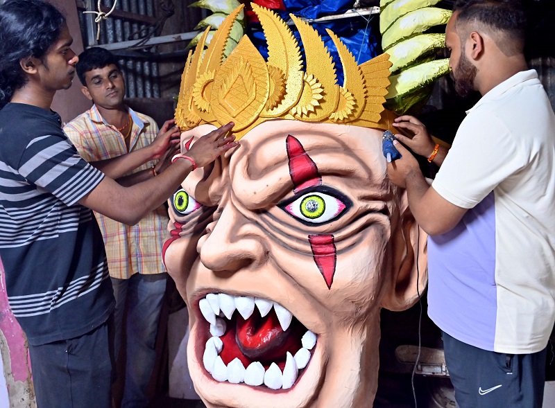 पणजी : राज्यभरात सोमवारी पहाटे नरकासुर दहन होणार आहे. दिवाळी साजरी करण्यासाठी उत्साहाचे वातावरण आहे. नरकासुराच्या प्रतिकृती उभारण्यासाठी तरुणाईने विशेष मेहनत घेतली आहे. अनेक ठिकाणी नरकासुर प्रतिमेचे काम अंतिम टप्प्यात पोहोचले असून सजावटीसाठी रंगरंगोटी सुरू आहे.