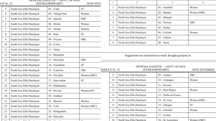 पणजी : गोव्यात (Goa) १३ डिसेंबर रोजी होणार असलेल्या जिल्हा पंचायत निवडणुकीच्या (Zilla Panchayat Election, Goa) आरक्षणाची अधिसूचना (Reservation notification) जारी झाल्याने उमेदवारांच्या निवड प्रक्रीयेला गती मिळणार आहे. आरक्षण खालीलप्रमाणे आहे.
