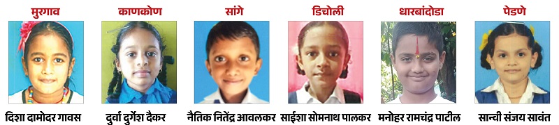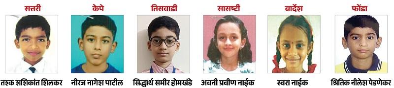 डिचोली : साईशा सोमनाथ पालकर, इयत्ता चौथी, श्री विष्ठल रखुमाई स. प्रा. वि. विठ्ठलापूर साखळी.