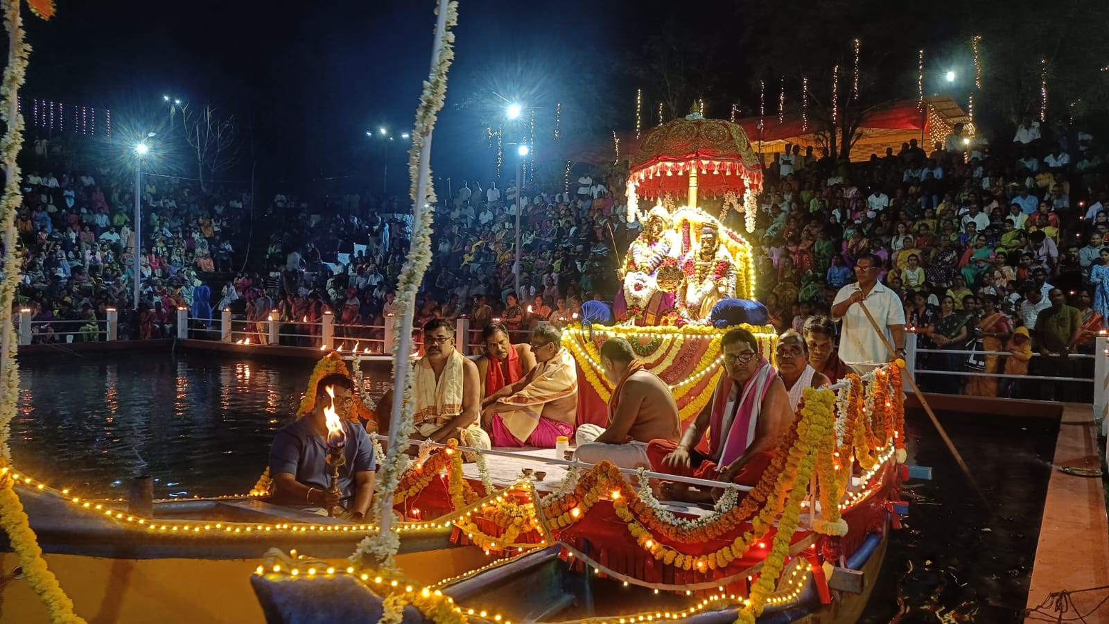 यावेळी तळीच्या भोवती मोठ्या संख्येने भाविक उपस्थित होते. पणत्या, दिव्यांनी भाविकांनी श्रींची ओवाळणी केली. भजन, घुमट, शमेळ वादनात मोठ्या उत्साहात नौकाविहार संपन्न झाला.