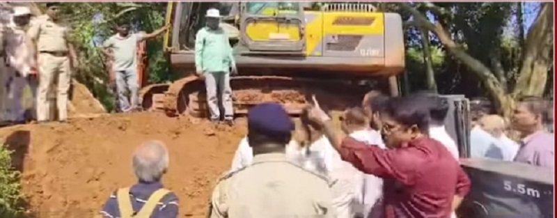 कासावली येथे भुयारी पादचारी मार्ग करण्यासाठी रेल विकास निगम लिमिटेडच्या अधिकाऱ्यांनी खासगी मालमत्तेतील माती हटवण्यासाठी यंत्रसाम्रगीसह जबरदस्तीने प्रवेश केल्यावरून तेथे रविवारी तणाव निर्माण झाला.
