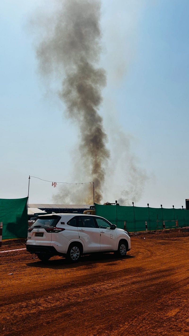 मोपा विमानतळ परिसरात रेसिंग कार ट्रॅकच्या मधोमध सुक्या गवताला आग