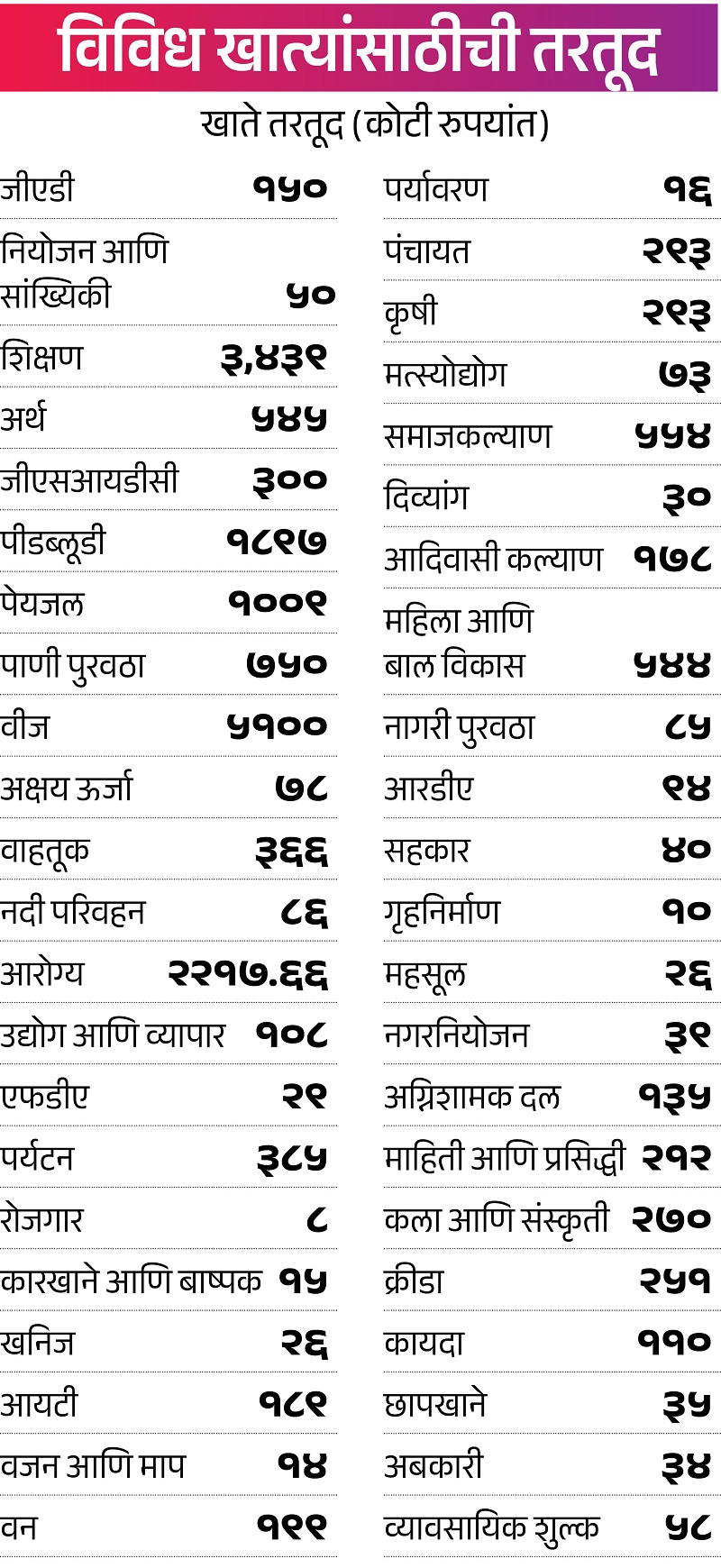 वारकऱ्यांना ‘मुख्यमंत्री वारकरी साहाय्य’ योजना राबवणार. पंढरपूरला जाणाऱ्या वारकऱ्यांसाठी १ कोटीची तरतूद.