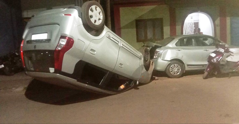 सासमोळे बायणा येथे गुरुवारी पहाटे चारच्या दरम्यान झालेल्या अपघातात एका कारने तीन वाहनांना धडक दिली. कार रस्त्यावर उलटल्याने कारचालक जखमी झाला. अपघातात तीन वाहनांचे व अपघातग्रस्त कारचे नुकसान झाले.