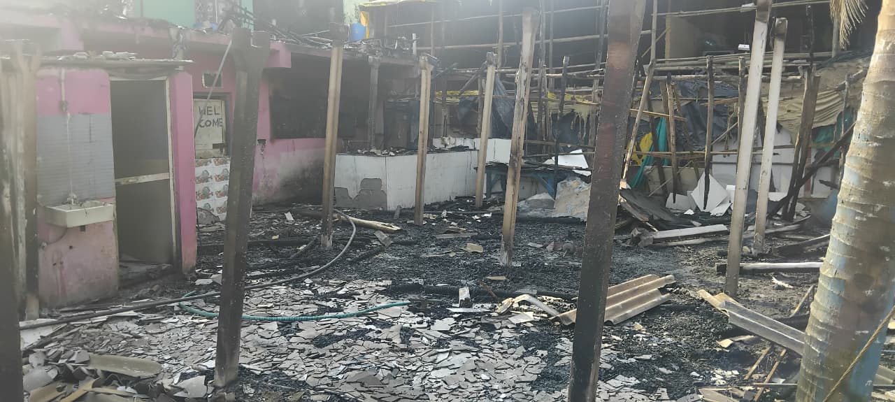 अग्निशमन दलाचे (Fire brigade) बंब रेतीत अडकून पडल्याने, आग विझवण्यात मोठा अडथळा निर्माण झाला. अग्निशमन दल, पोलीस (Police) व स्थानिकांनी अपार मेहनत घेऊन आग आटोक्यात आणली. शार्टसर्कीटमुळे ही आग लागली. शनिवारी पहाटे ३ च्या सुमारास वीज खांबावर आगीच्या ठिणग्या उडाल्या. त्यानंतर रेस्टॉरंटना आग लागली.