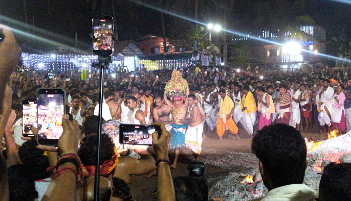 पणजी : पारंपरिक प्रथा, धार्मिक विधी आणि भक्तीमय वातावरणात शिरगाव येथील श्री देवी लईराईचा जगप्रसिद्ध जत्रोत्सव मोठ्या दिमाखात साजरा झाला. 'हर्रो हर्रो'च्या जयघोषाने आणि हातातील वेतकाठी हवेत फिरवत नाचणाऱ्या धोंडगणांच्या चैतन्याने संपूर्ण शिरगाव परिसर दणाणून गेला. यावर्षी प्रशासकीय पातळीवर अत्यंत कडक सुरक्षा व्यवस्था आणि शिस्तबद्ध नियोजन करण्यात आले होते, यामुळे भाविकांना आणि धोंडगणांना विनासायास दर्शन घेता आले. मॅपिंगद्वारे प्राप्त इन्फॉग्राफिक्सच्या आधारे पोलिसांनी दिलेल्या माहितीनुसार भक्तीच्या ऊर्जेने भारलेल्या सुमारे एक लाख नऊ हजार भाविकांनी होमकुंड विधिवेळी उपस्थिती लावून देवीचे दर्शन घेतले.